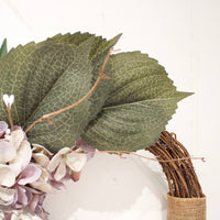 Handmade Vintage Hydrangea Grapevine Wreath With Burlap Wrap Detail